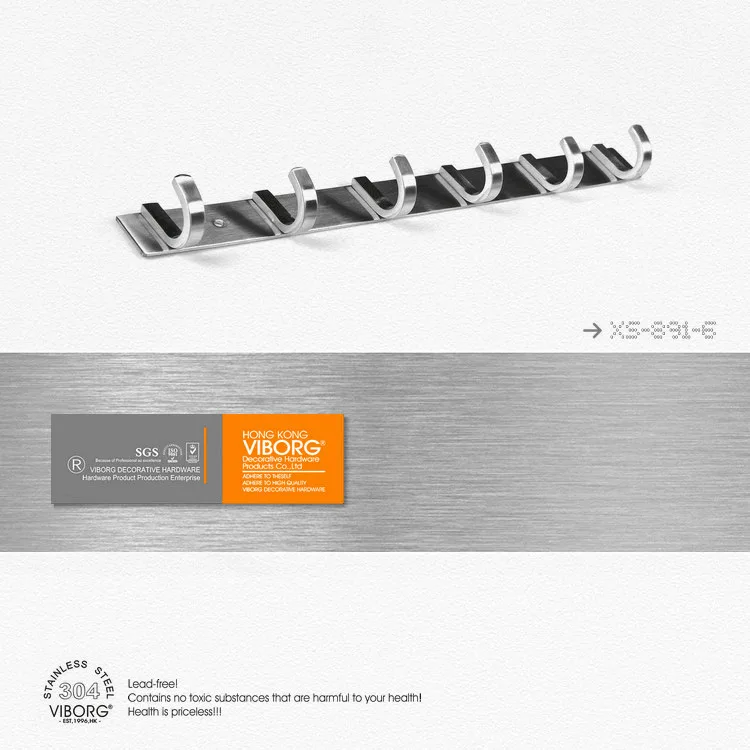 Изготовлен из SUS-304 нержавеющей стали; Высокое качество, Прочная конструкция и сверхплотный, прочный продукт! Действительно отличная отделка-эстетически приятный внешний вид, который характерен для SUS-304 изделий из нержавеющей стали Не ржавеет, остается нержавеющим навсегда, SGS, в течение 72 часов в солевом тумане Тесты, 100% прочный Тип:6-Крючок; Общая длина: 39 см; Со скрытыми винтами