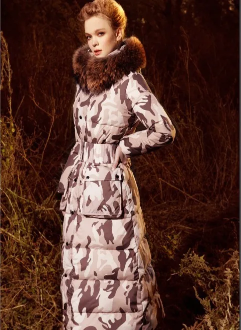 Зимняя женская модная длинная куртка на утином пуху в Звездном стиле с капюшоном из натурального меха, женское теплое пальто с поясом, армейский зеленый цвет, WD2025