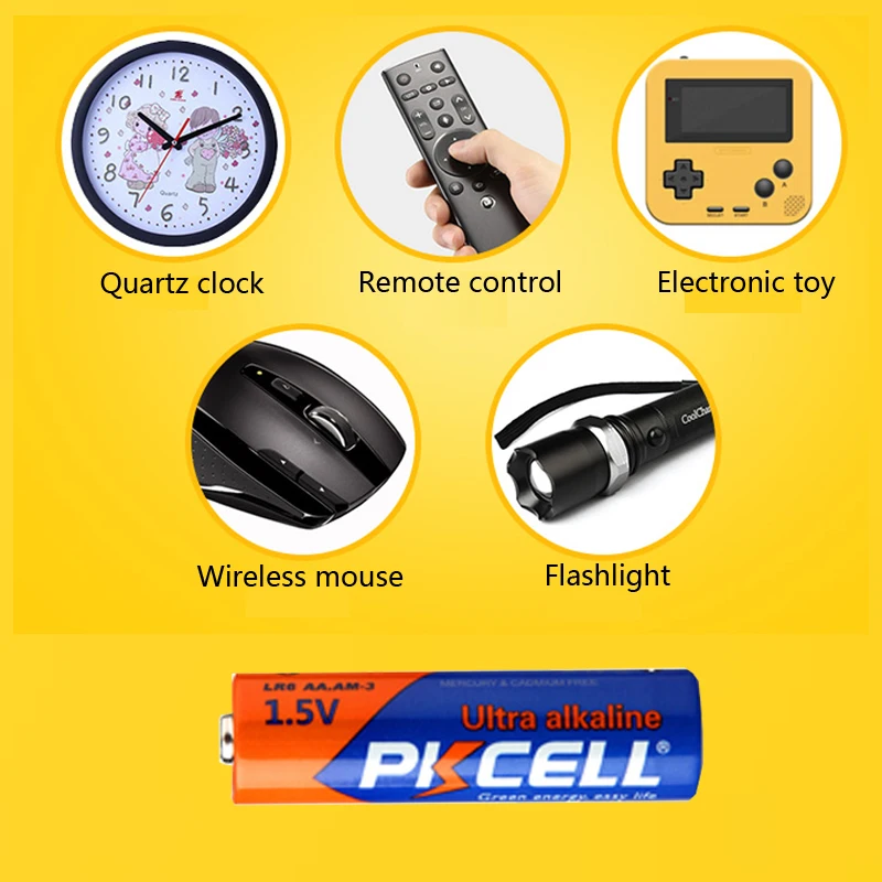 Тип батареи: Батарея AA 1,5 B LR6 AM3 E91 MN1500 алкалиновые сухие батареи Основная батарея Бренд: PKCELL Модель:Алкалиновая батарея AA LR6 AM3 E91 MN1500 Размер: AA Напряжение:1,5 В Высота: 49,2-50,5 мм Диаметр: 13,5-14,5 мм Ёмкость: 3.9 Ом, 24ч/с, 360 минут Химический состав: Щелочь MO2 (без ртути или кадмия) Срок годности: 10 лет Применение: MP3, камера, вспышка, бритвы, электрические игрушки, CD плеер, пульт дистанционного управления, беспроводная мышь, клавиатура, аудиоплеер и так далее.