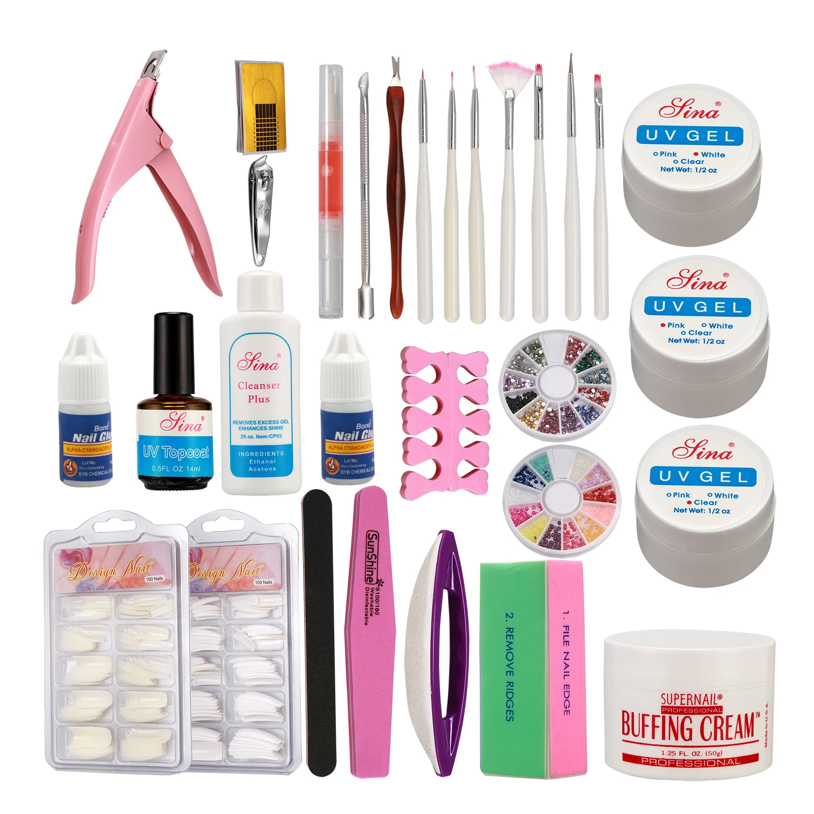 Профессиональный УФ-гель для дизайна ногтей набор инструментов УФ-лампа Кисть для удаления кончиков ногтей Клей Акрил UW