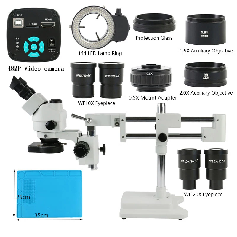 Рабочее расстояние: 7X-45X (100 мм) использование объектива 0.5x 3.5X-45X(165 мм) использование объектива 2.0x 7X-90X(40 мм)